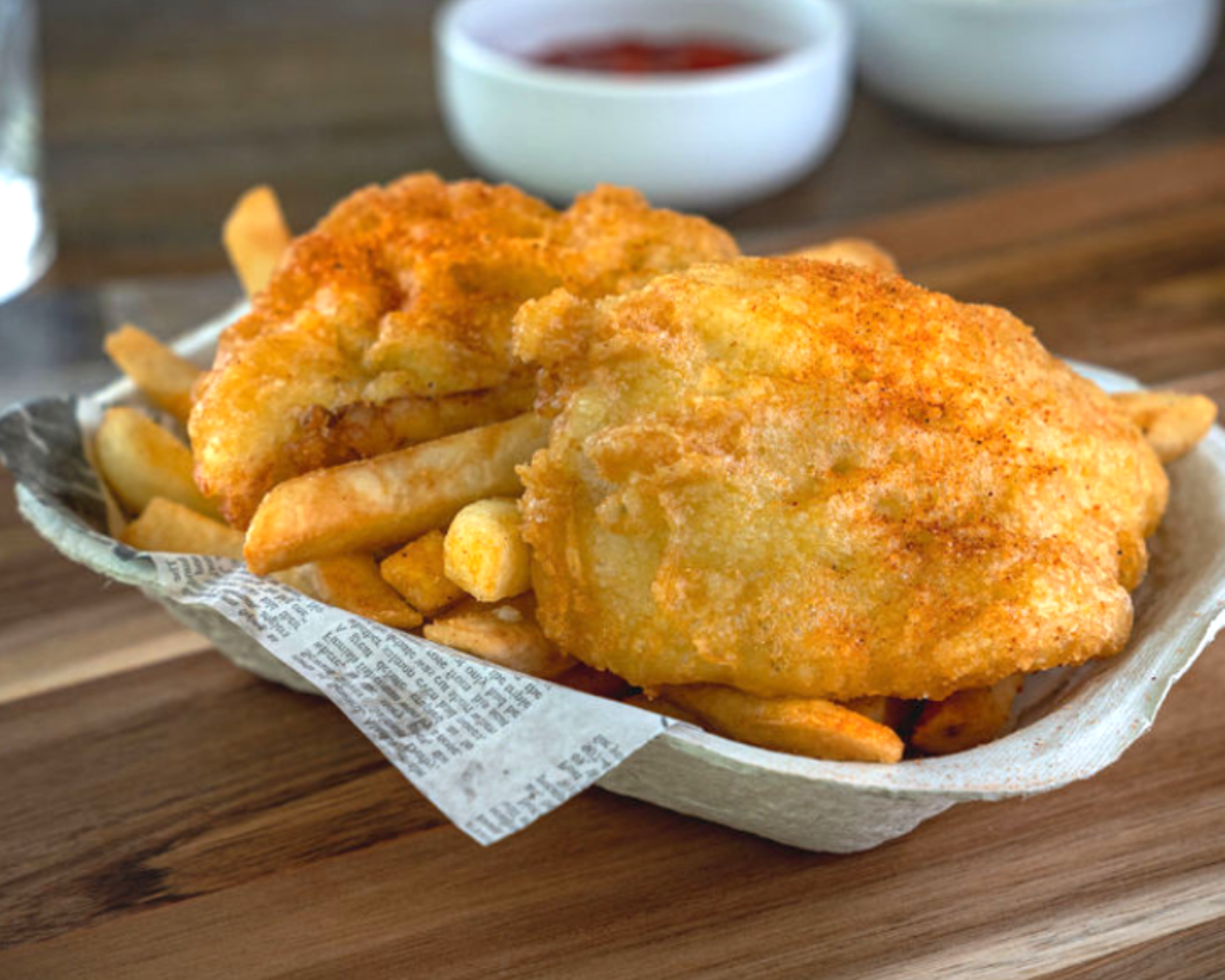 The sauces matter. Both our tartar and cocktail sauces are made in house, which means no generic condiment packets and no cutting corners on the details that make a great fish and chips complete. The kind of thing you only notice when it is done right.